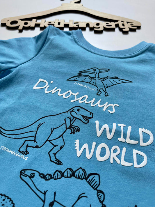 Jongens T-Shirt 'Dinosaurs Wild World' Blauw met Opdruk