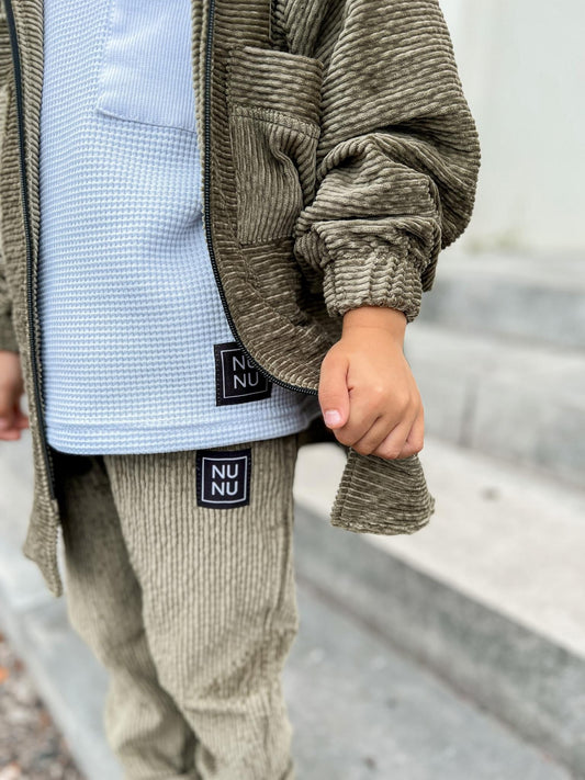 Jongens Setje ‘Tristan KG’ Khaki-Groen Corduroy Overshirt Met Rits en Broek Khaki-Groen