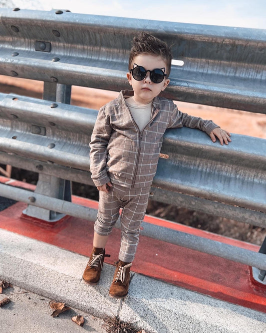 Jongens Setje 'Peter' Vest met Rits en Broek Beige / Geruit