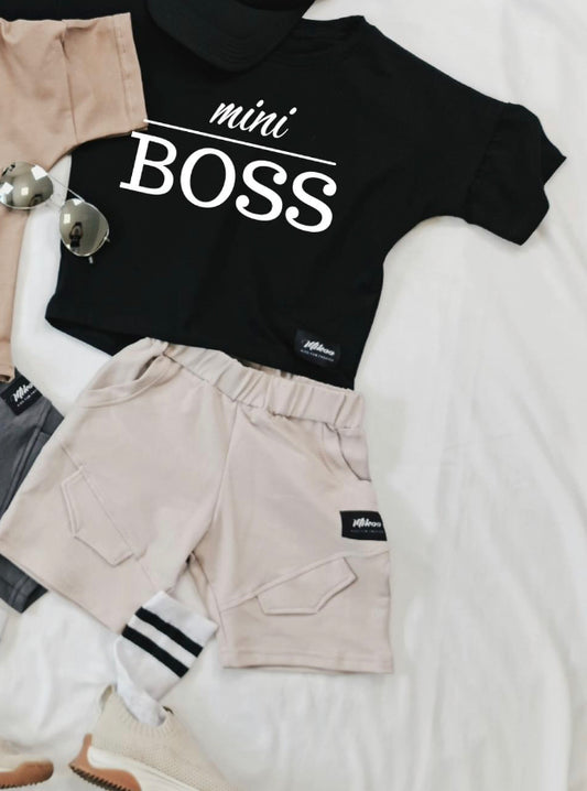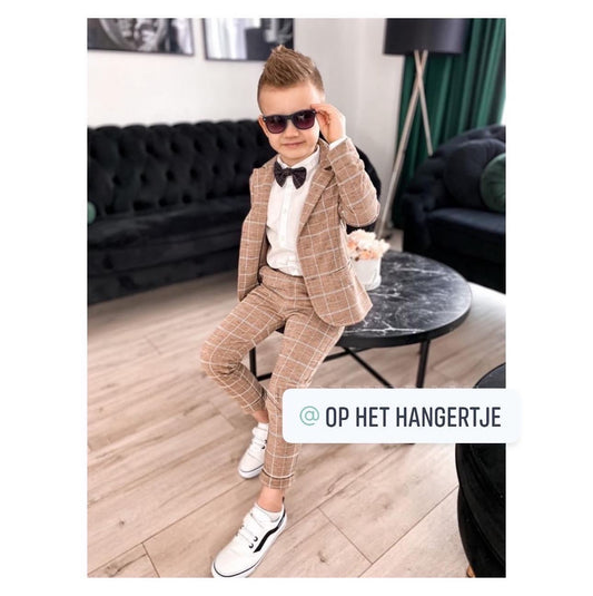 Stoer Pakje Twee-delig 'Boss' Beige Geruit Met Vlinderdas