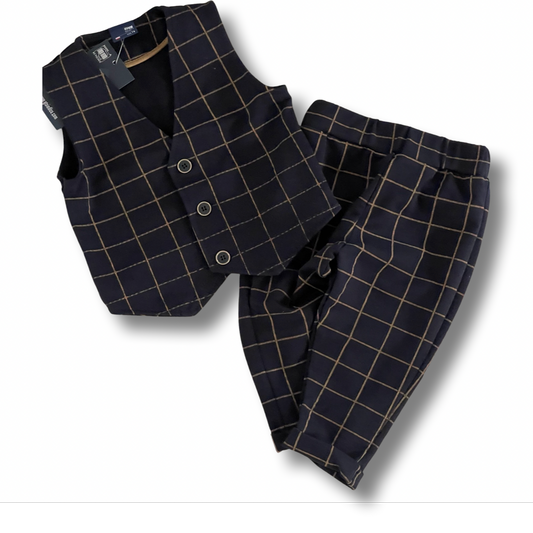 Jongens Setje 2-Delig 'Jean' Gilet Met Knoopsluiting En Broek Zwart / Beige Geruit