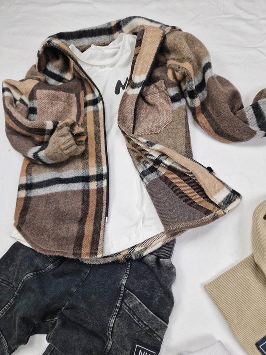 UitverkochtJongens Houthakkers Blouse Bruin Beige Ecru