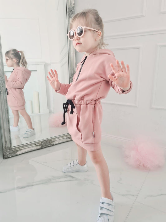 Tuniek 'Sporty' met Capuchon, Ritssluiting, Koord en Zakken Oud-Roze