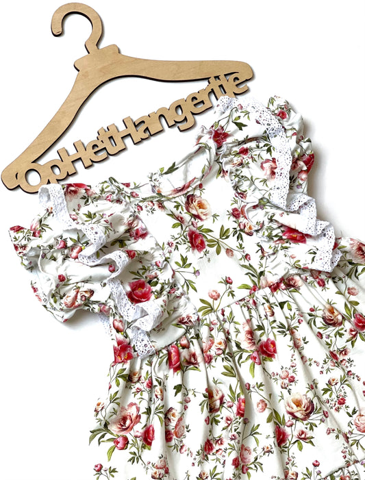 Jurkje 'Roses' Met Ruches Met Borduursels Gebroken Wit Bloemenmotief