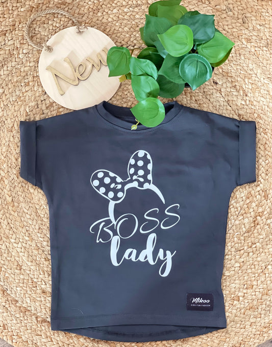 UitverkochtMeisjes T-Shirt 'BOSS LADY' Antraciet