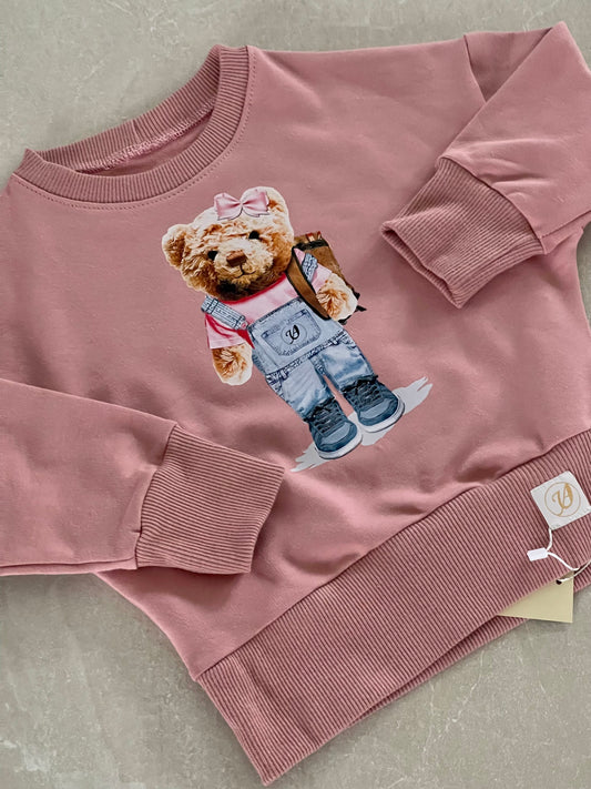 Meisjes Sweatshirt ‘Teddy-Girl’ Met Beer Opdruk Oud-Roze