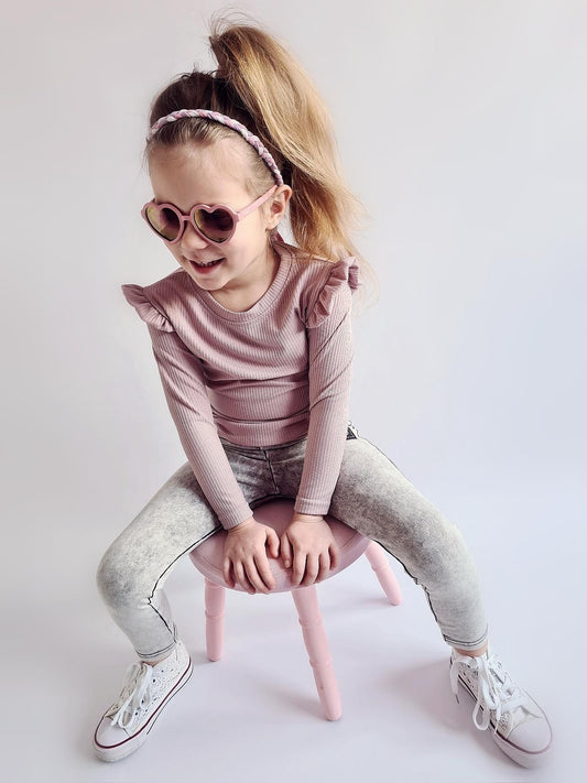 Meisjes Longsleeve ‘Patricia’ Stretch en Ruches Oud-Roze