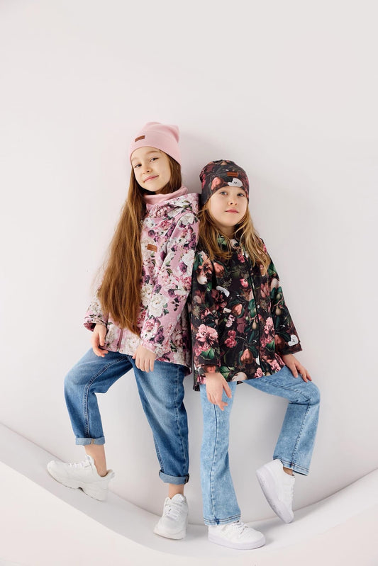 Meisjes Softshell Jas ‘Mikky’ met Rits en Capuchon en Zakken Roze Tint Bloemen Motief