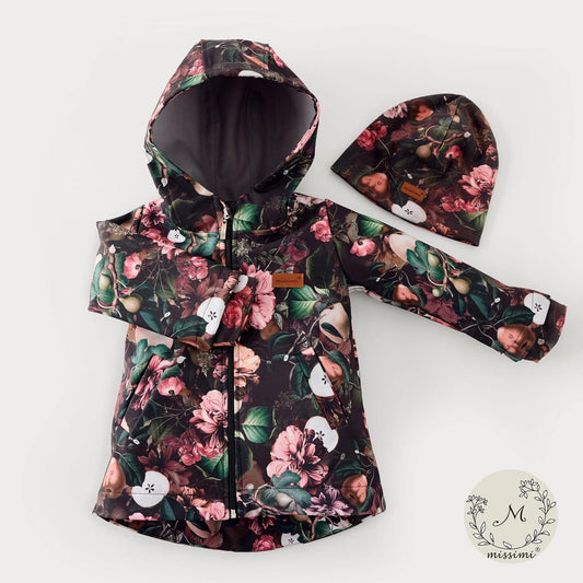 Meisjes Softshell Jas ‘Aivy’ met Rits en Capuchon en Zakken Warme Tint Bloemen Motief