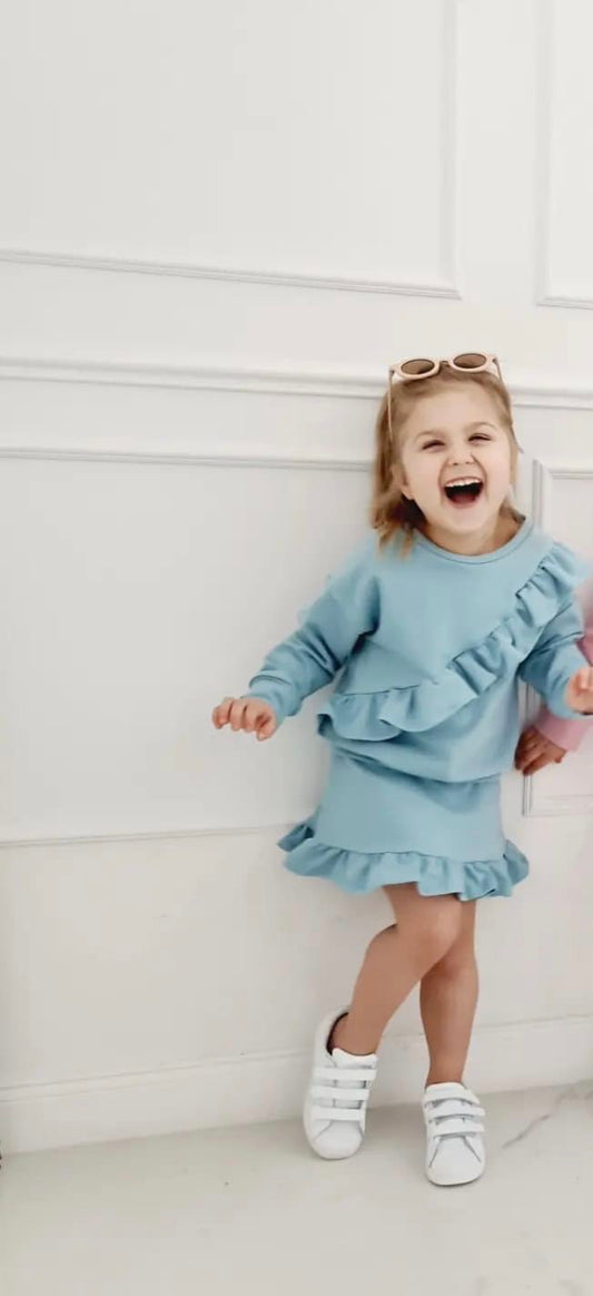 Meisjes Setje 'Missi Ruche' Sweatshirt met Ruche en Rokje met Ruche Licht Blauw