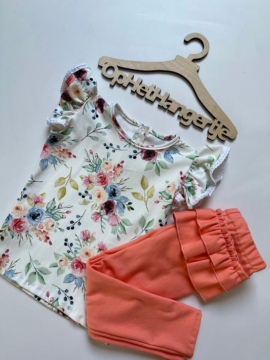 Setje T-Shirt Bloemenmotief met Legging met Ruches Oranje