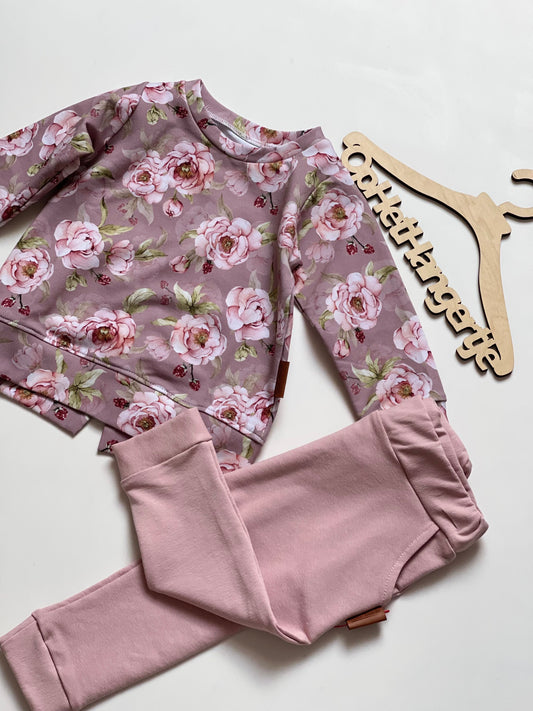 Meisjes Setje 'PAEONIA' Sweatshirt en Jogging Broek met Zakken Oud-Roze / Bloemen motief