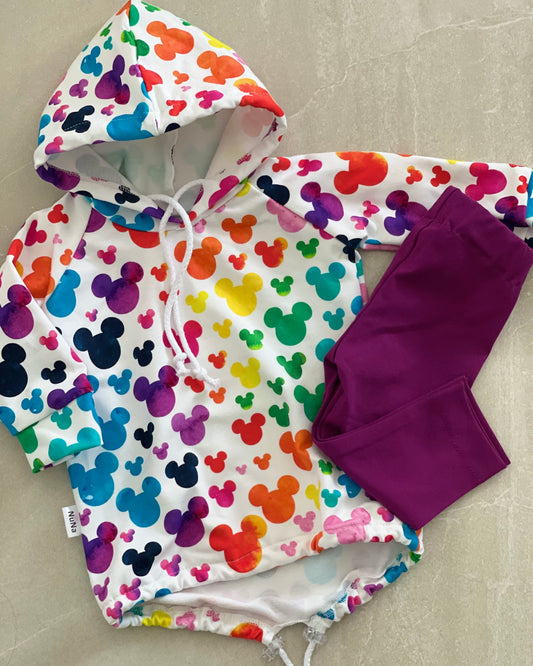 Meisjes Setje 'Colourful Mickey' Oversized Hoodie Wit/Mickey Print en Legging PAARS
