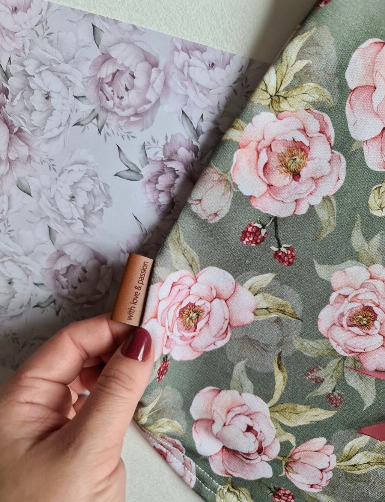 Elegant meisjes setje 'PAEONIA' met een Sweatshirt met bloemenmotief in Groen en een Jogging broek in Groen met daarop een Zak met bloemen motief